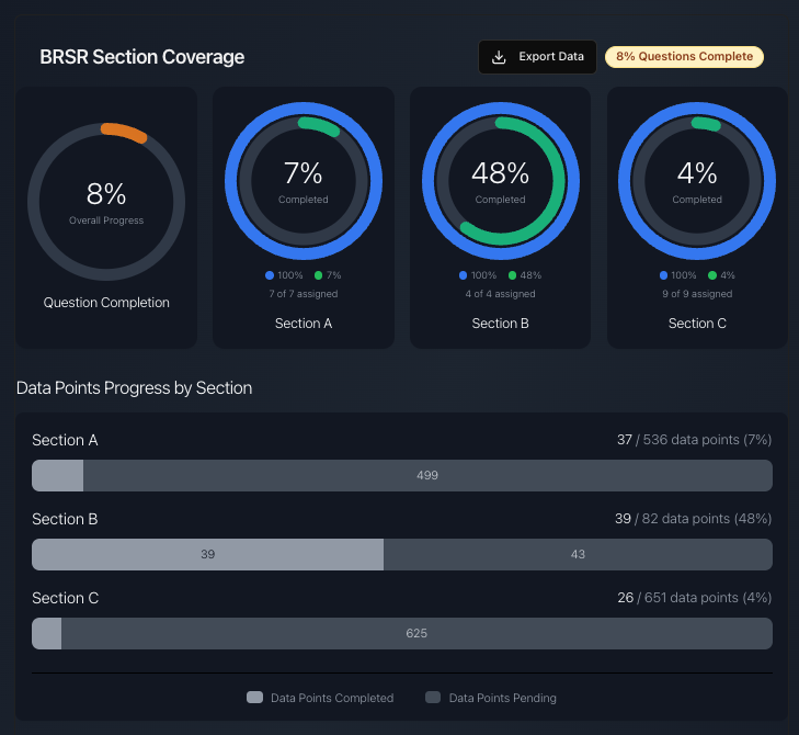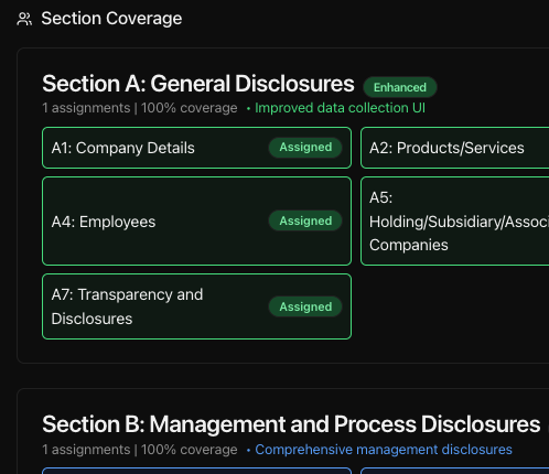 Complete Global and Indian reporting capabilities with generation of comprehensive ESG reports meeting all major frameworks and standards.